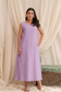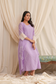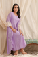 A statement two-piece set in cotton chanderi, featuring a sleeveless inner slip and a flowy front-open jacket. The round neckline, ombré sleeves, and airy flare come together in a silhouette that feels effortless yet elevated. In this version, soothing lilac meets hand-dyed shibori patterns and glistening pearl embroidery,with every element whispering softness and quiet grace.