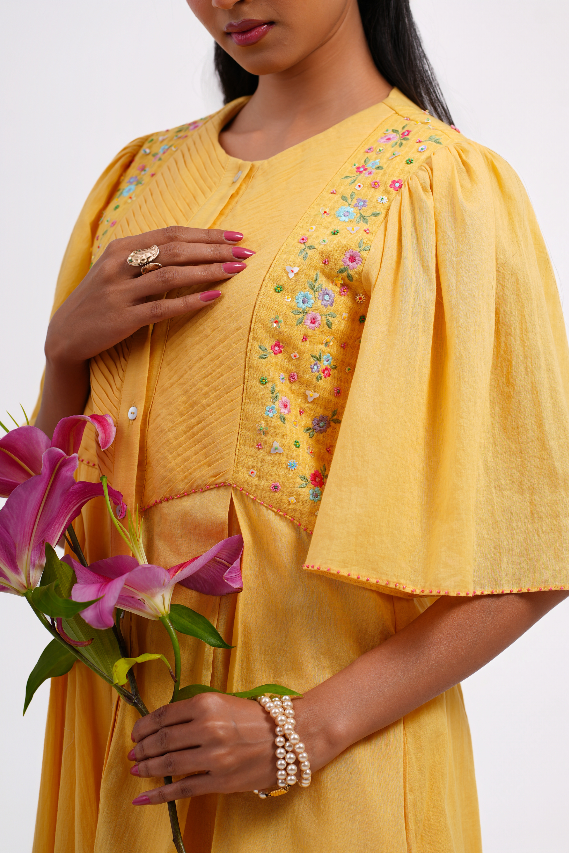 Button-down mulmul kurta with delicate embroidery and sequin accents through the front.